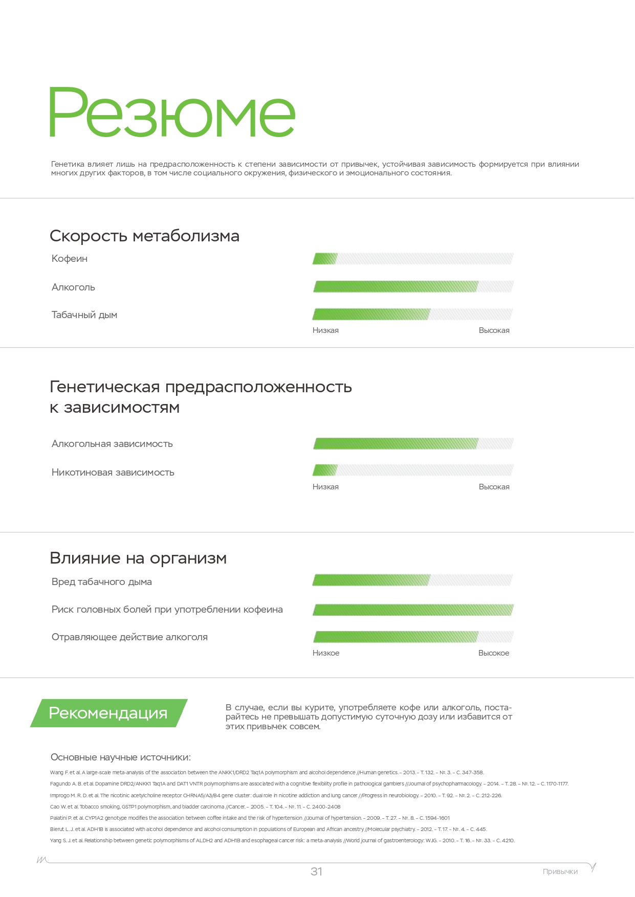 | Рацион питания Метаболизм алкоголя Метаболизм кофеина Физическая нагрузка Непереносимости Вкусовые ощущения Никотин Психологические зависимости Пищевое поведение Потребность в витаминах Уровень холестерина Спортивный потенциал | Рацион питания Метаболизм алкоголя Метаболизм кофеина Физическая нагрузка Непереносимости Вкусовые ощущения Никотин Психологические зависимости Пищевое поведение Потребность в витаминах Уровень холестерина Спортивный потенциал | Рацион питания Метаболизм алкоголя Метаболизм кофеина Физическая нагрузка Непереносимости Вкусовые ощущения Никотин Психологические зависимости Пищевое поведение Потребность в витаминах Уровень холестерина Спортивный потенциал |